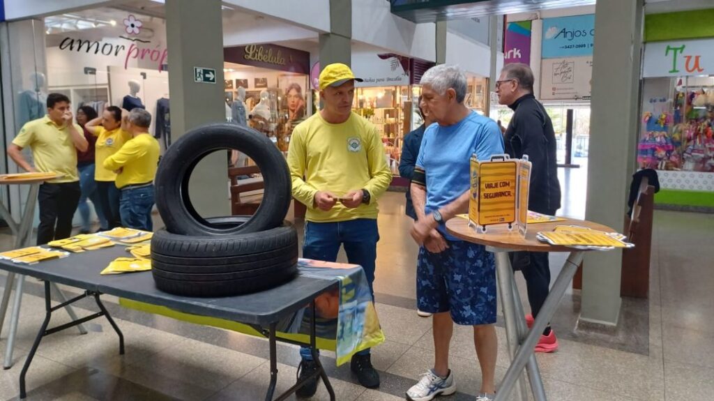 Os educadores abordam os condutores e fazem a conferência in loco dos pneus, alertando-os para fazerem a troca, caso não estejam em boas condições de rodagem. Eles também entregam um folder informativo que contém um medidor para aferir a profundidade dos sulcos dos pneus para auxiliá-lo em medições futuras.