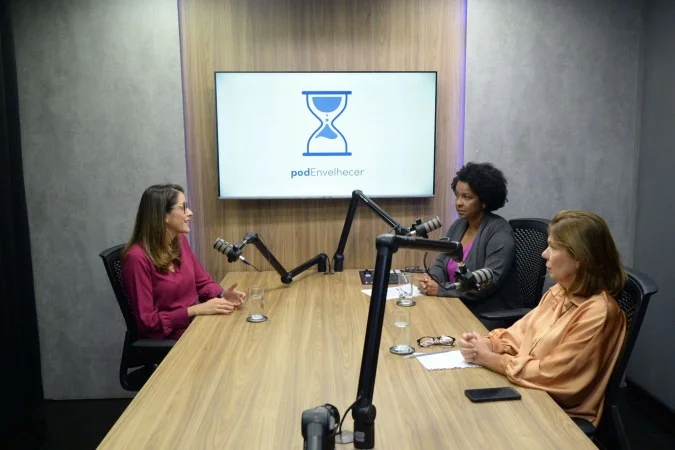 22.01.2026 Guilherme Felix CB/DA Press. PodEnvelhecer. Randara Rios, geriatra, sibele negromonte e carmen souza – (crédito: Guilherme Felix/CB/D.A Press)
